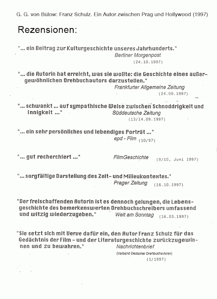 Franz Schulz. Ein Autor zwischen Prag und Hollywood