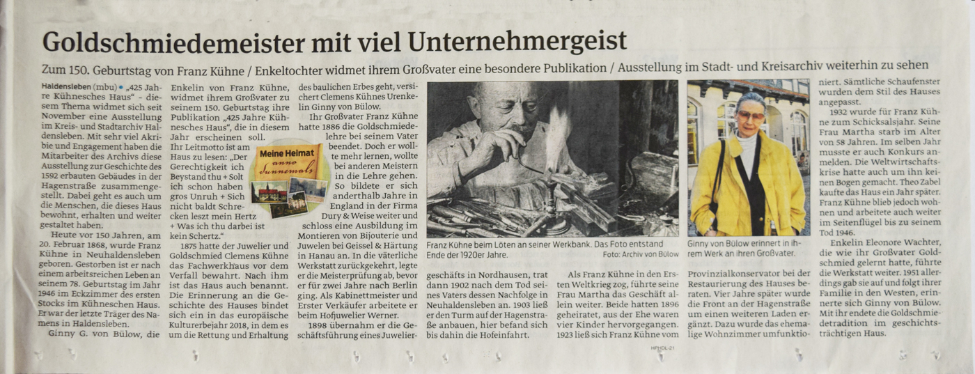 Goldschmied Kühne zum 150. Geburtstag (20.02.2018)